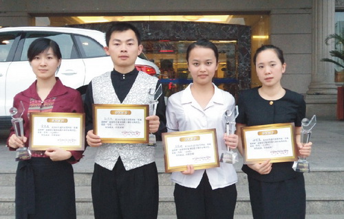 2011年8月16日,在嘉興富悅大酒店舉行的第四屆“禾城老酒杯”旅游飯店服務(wù)技能大賽圓滿落下了帷幕。本次大賽共有24支參賽隊(duì)伍,88名參賽者。華城集團(tuán)下屬圣雷克大酒店共派四名選手參與。比賽內(nèi)容包括理論考試、口試和技能操作三個(gè)部分,對(duì)飯店業(yè)員工的綜合素質(zhì)進(jìn)行了全面考核。最終,我店四名員工不負(fù)眾望,獲得了團(tuán)體第二名的好成績(jī)。在個(gè)人單項(xiàng)比賽中,孫金躍獲調(diào)酒一等獎(jiǎng),金美娟獲西餐擺臺(tái)二等獎(jiǎng),汪佩霞、唐莉娜分別在中餐擺臺(tái)、中式鋪床中獲得三等獎(jiǎng)。