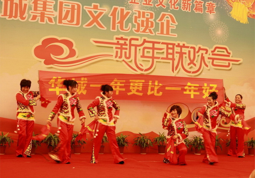 會上,員工代表首先發(fā)言。華城茂麓張學(xué)亮、華城衣歌路顧國強、華城制衣袁如意作為員工代表分別上臺發(fā)言,他們的發(fā)言代表著華城集團(tuán)五千員工的心聲,感人的語言,真切的事實,字字句句都充滿著催人奮進(jìn)的激情,從側(cè)面可以了解到華城企業(yè)在員工心目中的地位,以及企業(yè)文化建設(shè)推廣的成效。員工發(fā)言結(jié)束后,集團(tuán)董事長張祥林作了新年致辭,表達(dá)了對大家新年的祝福和誠摯的問候,并感謝大家在過去一年里所作的努力,肯定了過去所取得的成績,同時,就企業(yè)今后的發(fā)展方向、發(fā)展趨勢作了介紹和分析,明確了新一年企業(yè)的戰(zhàn)略目標(biāo)和措施,動員大家要一如既往地同心協(xié)力,要在原有的基礎(chǔ)上突破創(chuàng)新,張董的講話讓在座員工倍添動力,倍增信心,贏得了如雷般的掌聲。之后,精彩的文藝表演伴隨著豐盛的晚宴讓大家實實在在地共享了一次從物質(zhì)到精神上的饕餮大餐,集團(tuán)總部的大合唱《華城之歌》,氣勢昂揚,是華城不變的旋律,蓬勃的象征。華城茂麓選送的節(jié)目有十一組員工石高舉的獨唱“聽!薄⑵髣澆客踅ㄓ⒌莫毘白铎琶褡屣L(fēng)”,華城衣歌路選送的節(jié)目有員工簡娜娜等四人表演的舞蹈“日不落”、朱建明的獨唱“一個美麗的傳說”,三廠選送的節(jié)目有裁剪車間主任顧洪川的獨唱“草原之夜”、三車間楊平英等人表演的舞蹈“越來越好”,還有圣雷克選送的“電腦機械舞”,這些精彩的節(jié)目令大家目不暇接,現(xiàn)場不斷響起熱烈的掌聲,給晚會增添了熱鬧的氣氛和無限的魅力。