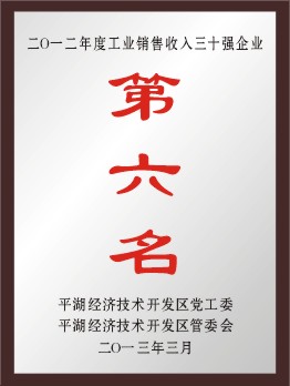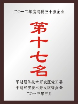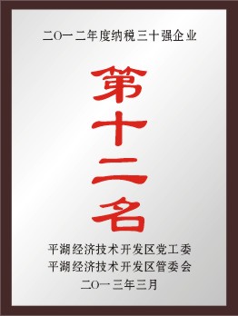 平湖市華城制衣有限公司榮獲平湖經(jīng)濟技術(shù)開發(fā)區(qū)二0一二年度納稅三十強企業(yè)第十二名;