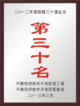 平湖華城都服飾有限公司榮獲平湖經(jīng)濟技術(shù)開發(fā)區(qū)二0一二年度納稅三十強企業(yè)第三十名;