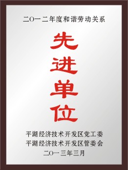 華城實業(yè)投資集團有限公司榮獲平湖經(jīng)濟技術(shù)開發(fā)區(qū)二0一二年度和諧勞動關(guān)系先進單位;