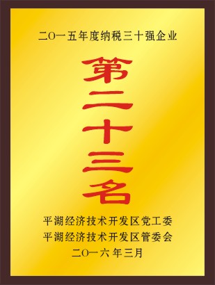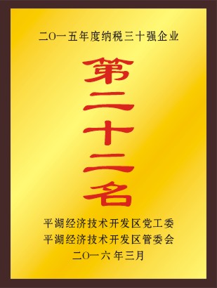 平湖市華城制衣有限公司榮獲平湖經(jīng)濟(jì)技術(shù)開(kāi)發(fā)區(qū)二0一五年度納稅三十強(qiáng)企業(yè)第二十二名;