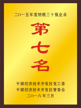 平湖華城茂麓制衣有限公司榮獲平湖經(jīng)濟(jì)技術(shù)開(kāi)發(fā)區(qū)二0一五年度納稅三十強(qiáng)企業(yè)第七名;