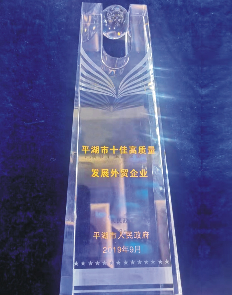 丹桂飄香秋意濃,金風(fēng)送爽喜報(bào)來。在剛剛舉行的2019中國•平湖西瓜燈文化節(jié)開幕式暨投資貿(mào)易洽談會(huì)上,平湖市委副書記、市長仲旭東對(duì)“平湖市十佳高質(zhì)量發(fā)展外資企業(yè)”、“平湖市十佳高質(zhì)量發(fā)展外貿(mào)企業(yè)”進(jìn)行了頒獎(jiǎng)。華城茂麓制衣有限公司喜獲“平湖市十佳高質(zhì)量發(fā)展外貿(mào)企業(yè)”榮譽(yù)稱號(hào)。
