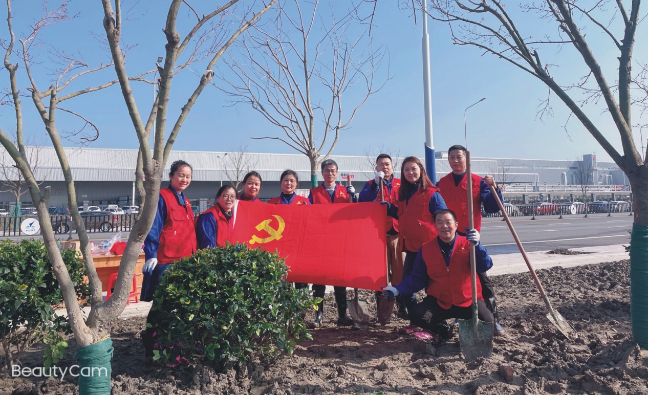 當(dāng)日早上8:30在陳書記的帶領(lǐng)下,一支由四男六女共十人組成的志愿隊從公司出發(fā),大概十分鐘左右的車程,到達(dá)了此次植樹活動的目的地,即長城汽車公司路段?紤]到泥地濕滑,書記已貼心地為每個人提前準(zhǔn)備好了雨鞋,換上雨鞋、穿上紅馬夾、戴上紗手套、抓起鐵鍬,為接下來的勞動做好了預(yù)熱準(zhǔn)備。我們的隊伍徑直走到了自己的包干區(qū),看著周圍一群群同樣穿著紅馬夾的其他公司的志愿者們,一腔勞動的熱血馬上涌上心頭,二話不說,拿鐵鍬的伙伴們早已瞄準(zhǔn)了那個事先定位好的樹坑,圍著坑一鏟一鏟地開始挖土。我們先選了小的灌木下手,所以十人的隊伍自覺地分成了兩個小分隊,有的挖土,有的抬樹,還有的在一旁用相機(jī)記錄下這激情時刻,可謂一派熱火朝天的景象。種好了灌木,我們十人組合開始齊心協(xié)力應(yīng)對那幾棵大樹,相比灌木而言,需要把坑挖得更大些,抬樹也需要更多的力氣,因為香泡樹身上長刺,無法接觸樹的上部,只能靠接觸樹干下部有布包住的位置用力。此時男同胞們充分發(fā)揮了他們的男性力量,兩三人同時用力,再加上一兩人拉起樹根的捆繩,終于穩(wěn)穩(wěn)地將樹放置到挖好的坑中。將樹放正后女同胞們扶住樹干,男同胞們拿起鐵鍬鏟土填坑,扶樹的女同胞們手沒空,腳也沒有閑著,抽出一只腳,用力地踩著填上來的泥土,讓每一鏟土都準(zhǔn)確地到它該去的地方,發(fā)揮其應(yīng)有的作用。一會兒功夫,一棵大樹就亭亭玉立地出現(xiàn)在了眾人的面前。
