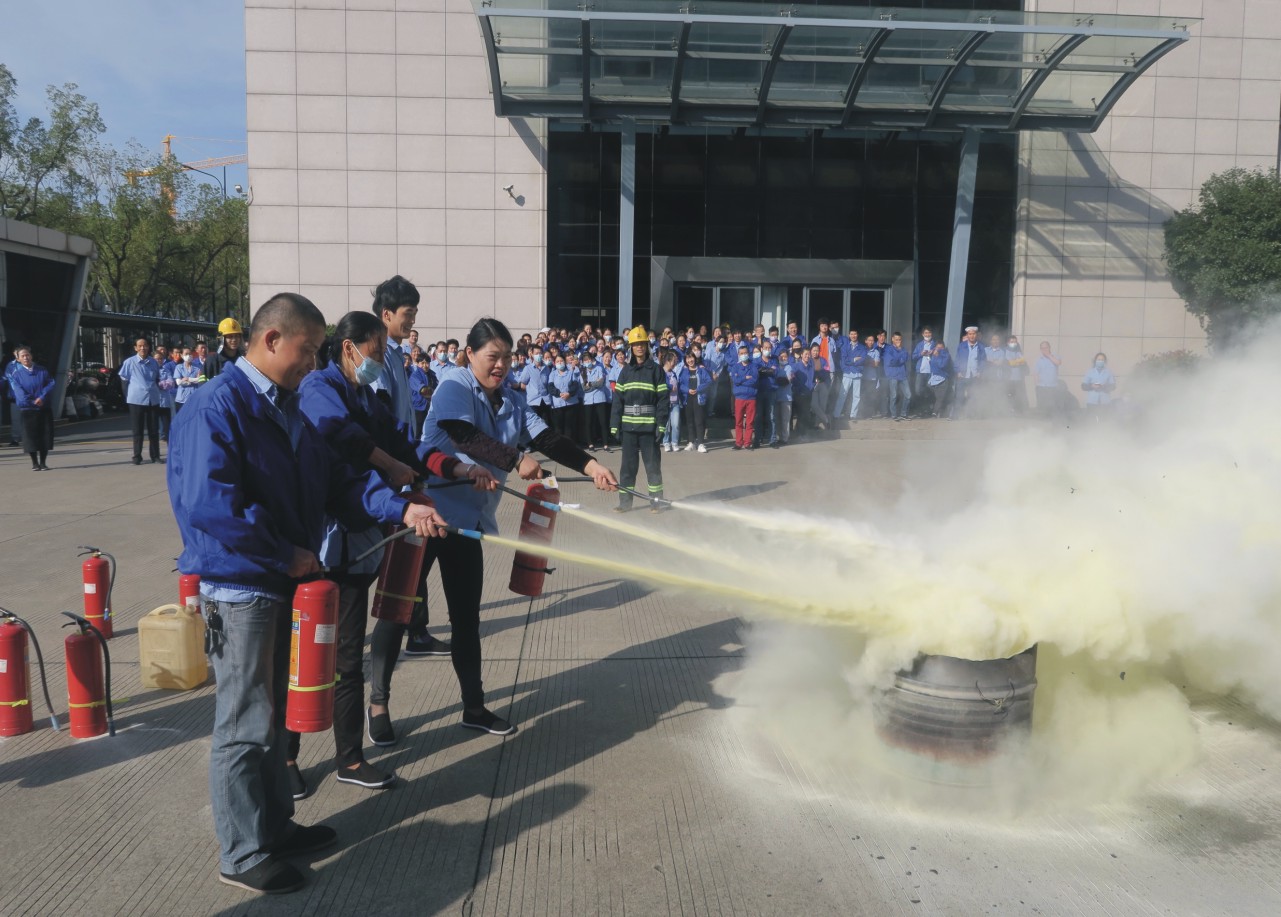演習第一步驟,緊急疏散。隨著警鈴響起,員工們立即停下手中的工作,馬上起身,通過消防通道緊急有序疏散。第二步驟,消防知識講解。員工們通過各條安全通道來到指定空曠地帶后,現場由集團總部人力資源部部長吳剛毅為大家講解消防演練的意義以及詳細的消防知識,主要從滅火方法及注意事項、火險隱患、應急自救常識等方面進行了詳細講解,有較高的實用性和可操作性,豐富了員工的消防知識。第三步驟,現場示范。通過吳部長對消防器材的使用說明,并且一個個動作拆分講解,示范運用,讓員工們詳細了解消防器材是如何在關鍵時候發(fā)揮作用的。第四步驟,模擬災情,員工實練。將演練道具油桶點燃后,員工們輪流上場,趁熱打鐵,將所學理論知識付諸實踐,最終熟練掌握了滅火器的使用方法。
