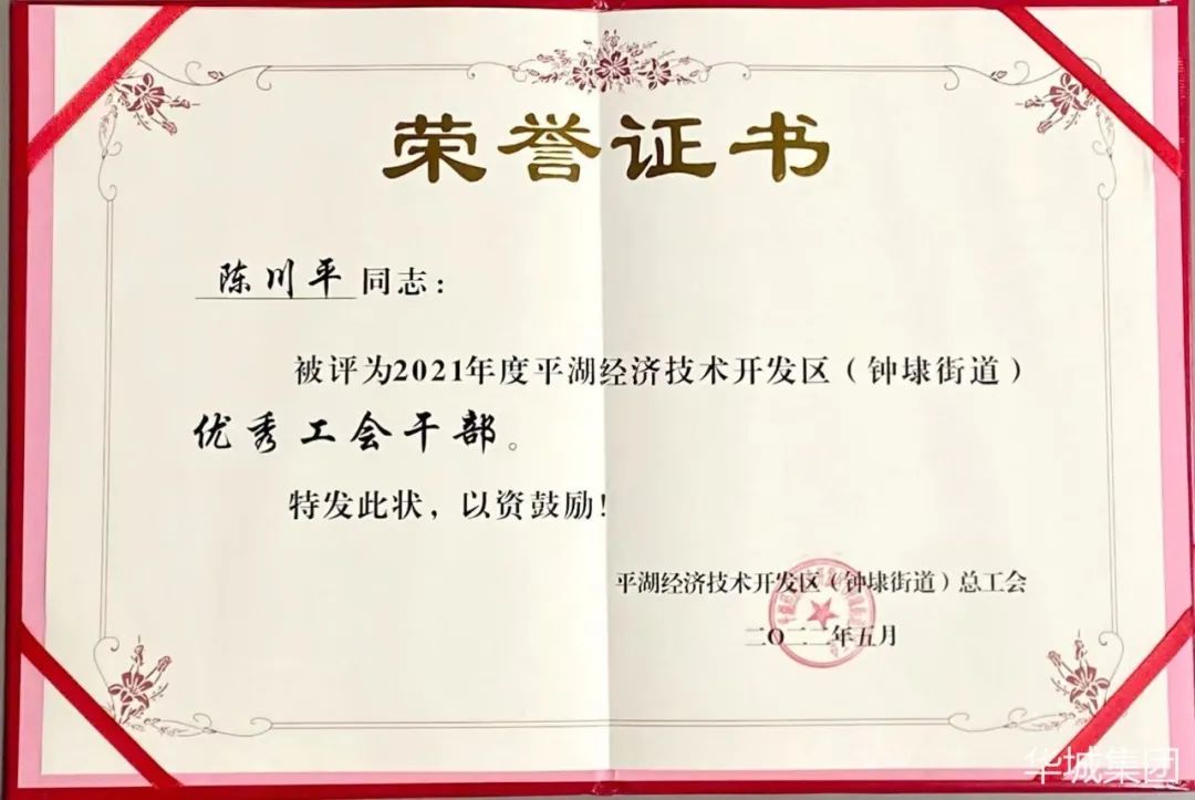 平湖華城茂麓制衣有限公司工會(huì)主席陳川平榮獲經(jīng)開“優(yōu)秀工會(huì)干部”稱號(hào)。