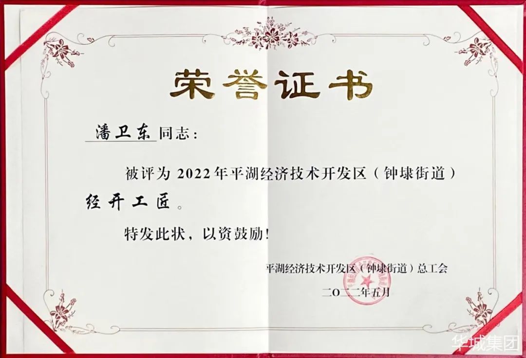 平湖華城茂麓制衣有限公司員工潘衛(wèi)東榮獲“經(jīng)開工匠”稱號(hào)。