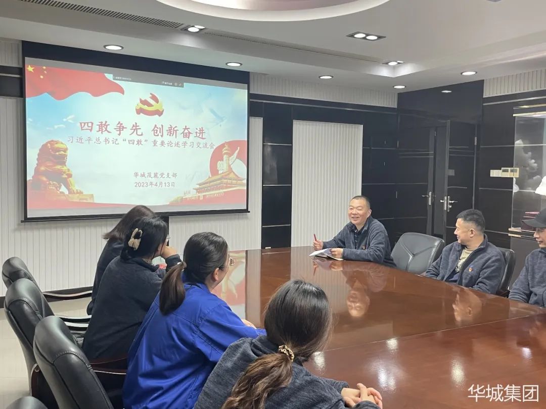 當(dāng)前位置:首頁 > 華城動態(tài)為深入學(xué)習(xí)貫徹黨的二十大精神,持續(xù)深化黨建引領(lǐng)作用,進一步提升黨員黨性修養(yǎng),不斷增強黨組織凝聚力和敢為、敢闖、敢干、敢首創(chuàng),弘揚“四敢”精神,汲取奮進力量。黨委各支部就“四敢”精神重要論述分別召開支部黨員會議學(xué)習(xí)討論。戰(zhàn)斗力,4月13日,華城集團黨委開展“追尋紅色記憶”主題黨日活動。一百余位黨員參加活動。