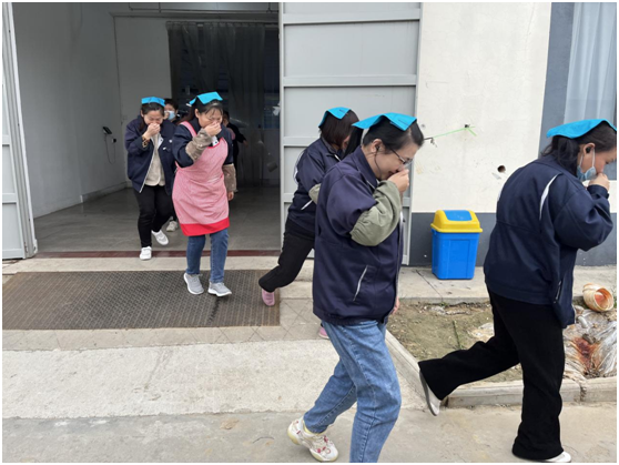 當(dāng)警報(bào)響后,所有員工馬上停下工作,關(guān)閉機(jī)械設(shè)備電源,以最快的速度按指定的“安全出口”“疏散通道”撤離到安全區(qū)域集合點(diǎn),并以班組為單位整隊(duì)集合。在疏散逃生時(shí),所有人員保持鎮(zhèn)定,集中精力,服從指揮。所有人員彎腰、口捂毛巾迅速跑出車間至外部安全區(qū)域。