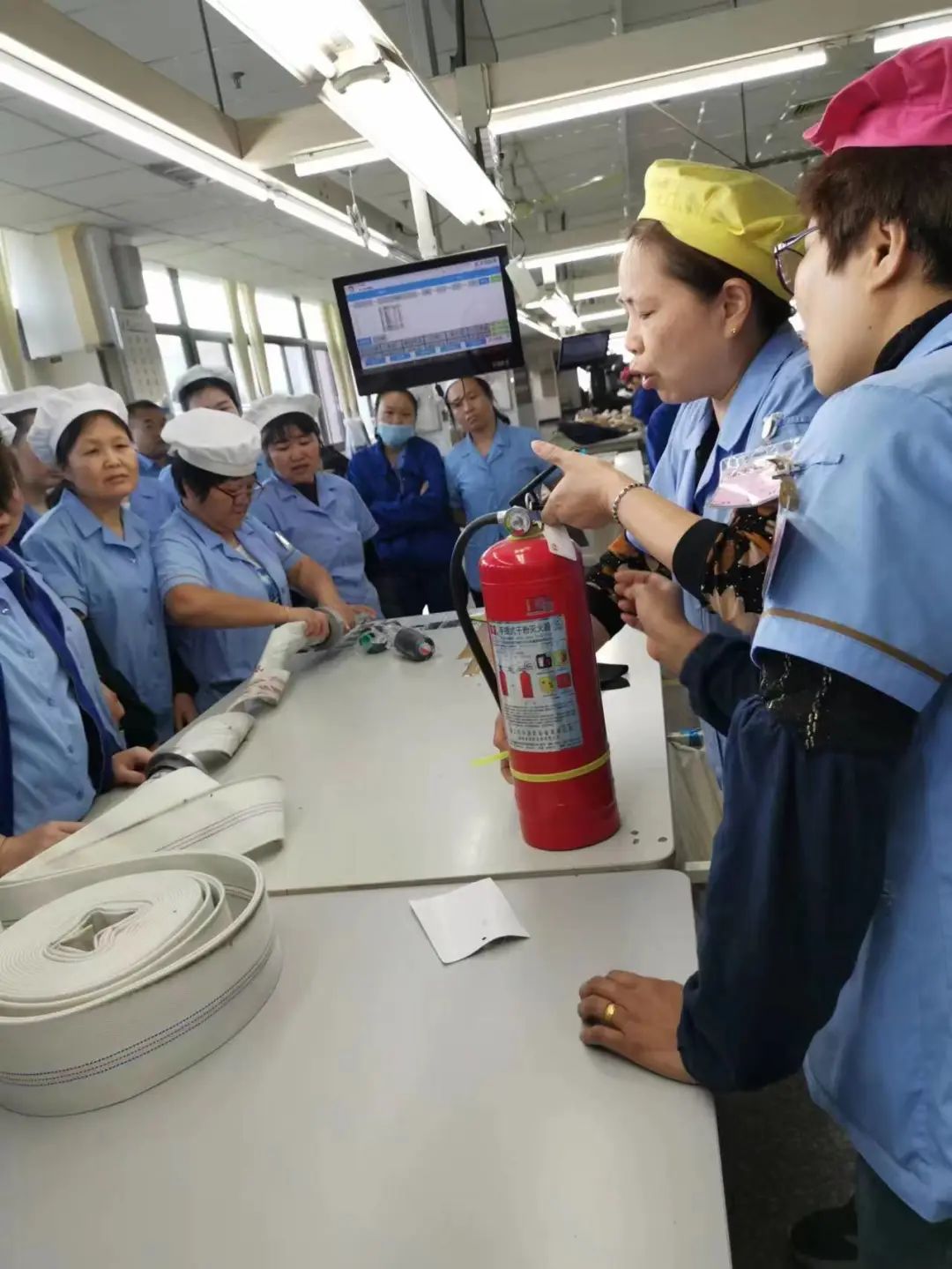 在車間里,利用開晨會的時間,每個小組由組長培訓(xùn),如何正確使用水槍及滅火器,并且讓員工參與到培訓(xùn)中。通過手把手的培訓(xùn),以及實(shí)操,讓每個員工對水槍及滅火器的使用熟練掌握。