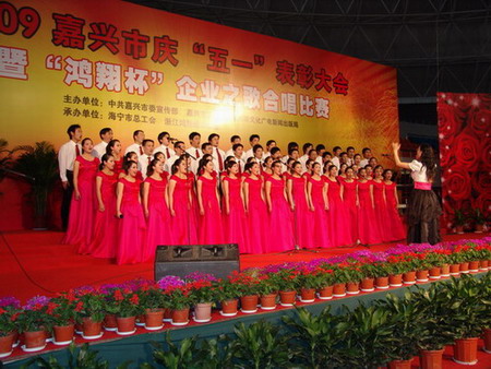 為進(jìn)一步深入開展嘉興市企業(yè)職工文化建設(shè)示范工程活動,扎實推進(jìn)全市企業(yè)職工文化建設(shè),助推全市經(jīng)濟轉(zhuǎn)型升級創(chuàng)新發(fā)展,經(jīng)嘉興市委宣傳部、市總工會、市文廣局研究決定,嘉興市企業(yè)歌曲征集評選活動和“鴻翔杯”企業(yè)之歌合唱比賽于2009年4月28日在海寧市體育中心舉行。我公司《華城之歌》合唱團(tuán)通過各隊員的共同努力,克服在排練過程中的種種困難,在比賽現(xiàn)場發(fā)揮出優(yōu)異的成績,所唱的《華城之歌》和《解放區(qū)的天》二首歌曲受到了現(xiàn)場觀眾的陣陣掌聲和評委的肯定,在此次比賽中獲得第一名。企業(yè)歌曲是體現(xiàn)企業(yè)文化和職工文化的重要載體,通過廣泛傳唱企業(yè)歌曲,展示企業(yè)形象,凝聚職工力量。這次《華城之歌》第一次在嘉興市級比賽中開唱就受到大家的好評,也是反映了我們?nèi)A城人的精神面貌,同時也展現(xiàn)了我們?nèi)A城集團(tuán)的企業(yè)形象。