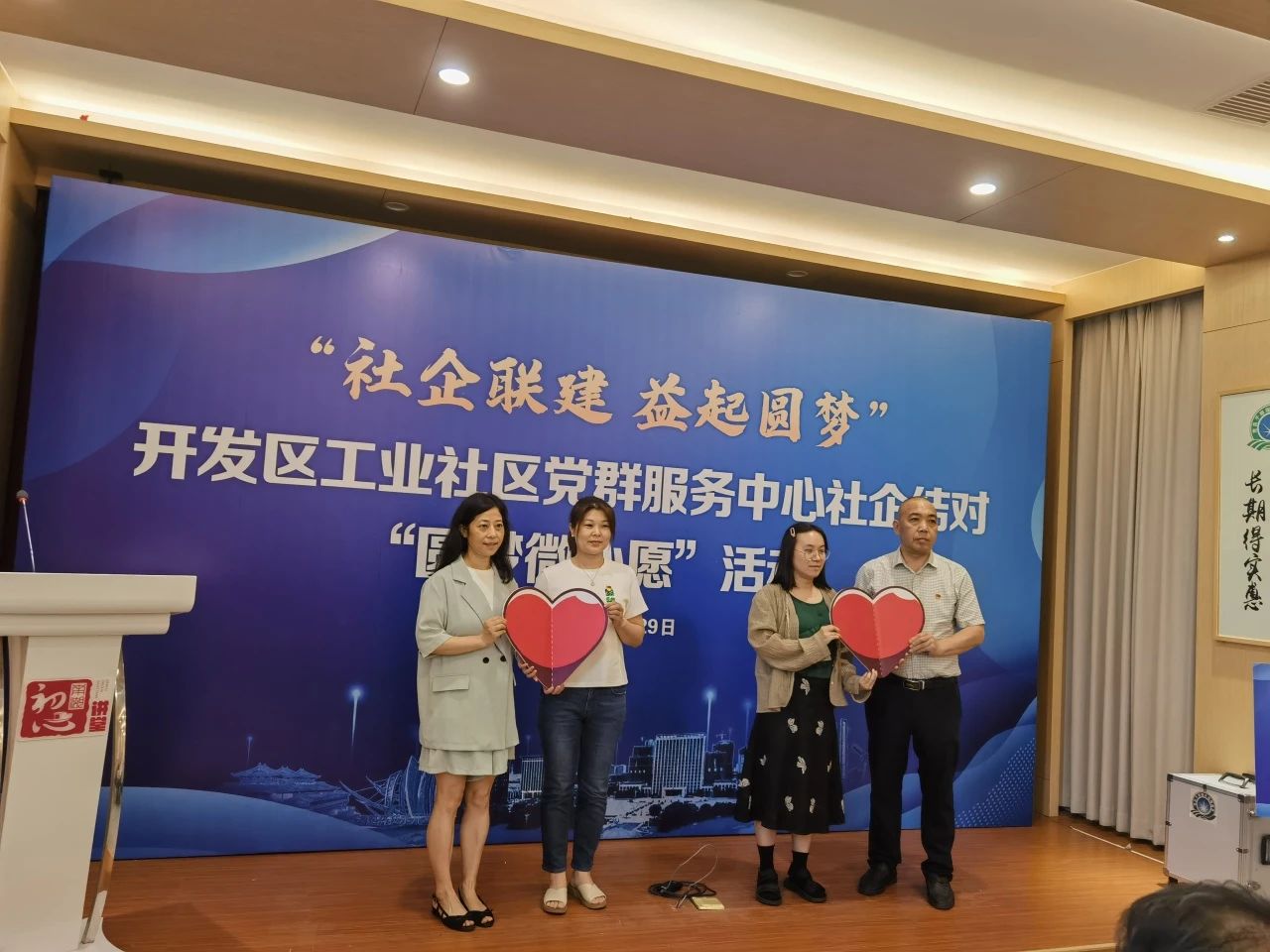 6月29日下午,在開發(fā)區(qū)工業(yè)社區(qū)黨群服務(wù)中心發(fā)起的“社企聯(lián)建 益起圓夢”活動中,我公司現(xiàn)場與西林寺社區(qū)結(jié)對,通過社區(qū)搭建的關(guān)愛橋梁,以認領(lǐng)微心愿的方式,給社區(qū)特殊群體送溫暖。