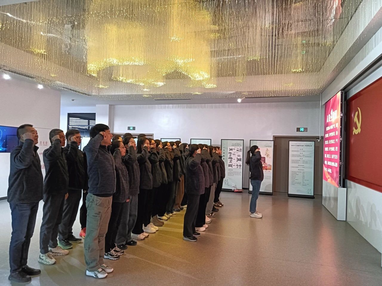 之后,在鮮艷的黨旗下,全體黨員莊嚴(yán)宣誓,重溫入黨誓詞,堅(jiān)定有力的誓言回蕩在大廳內(nèi),彰顯著黨員們不忘初心、牢記使命的信念。