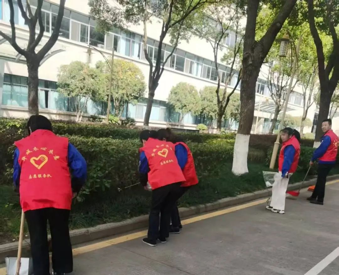 有的手持掃把,清理道路上的落葉和紙屑;有的撿拾樹木中間的垃圾和煙蒂;有的在角落中清除平時(shí)遺棄的廢物。大家干得熱火朝天,臉上都洋溢著滿意的微笑。