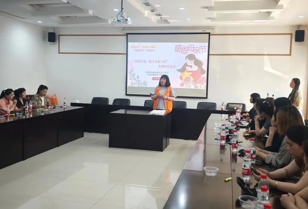 當(dāng)前位置:首頁 > 華城動態(tài)5月11日,平湖市鐘埭街道社會工作站在華城衣歌路組織開展“以愛為舟,照亮心途”家庭教育講座及“錦韻壓襟,探尋非遺之美”非遺體驗。本次母親節(jié)活動分為兩個環(huán)節(jié)進(jìn)行:家庭教育講座及非遺壓襟體驗活動,分別邀請家庭教育高級指導(dǎo)師、正面管教家長講師周美麗老師及嘉興市美協(xié)會員佳子老師為企業(yè)職工進(jìn)行活動指導(dǎo)。