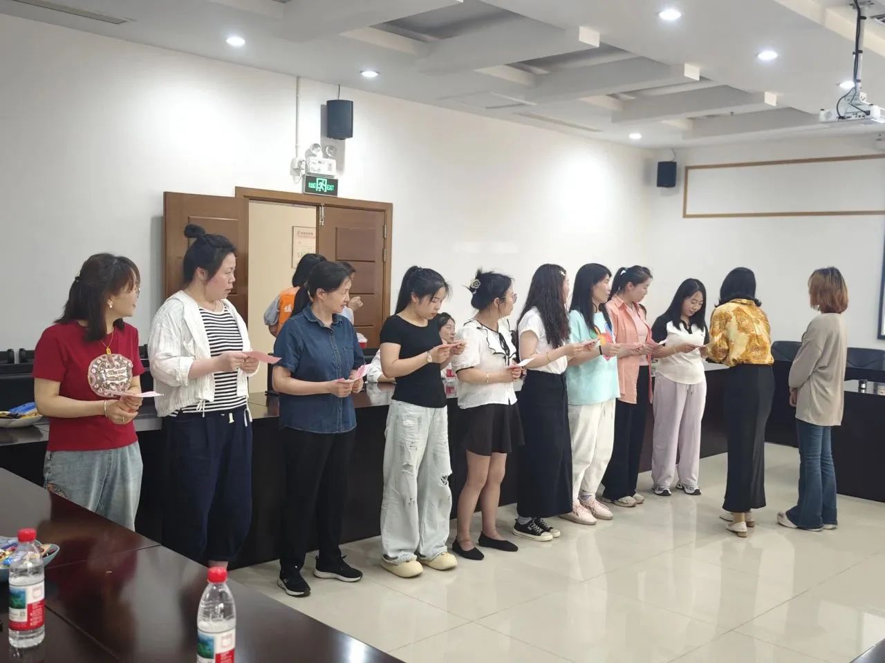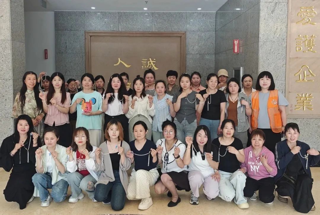 在精彩的講座結(jié)束之后,緊接著是一場沉浸于古典韻味的“非遺壓襟”體驗活動,讓企業(yè)員工們仿佛穿越回古代,領(lǐng)略傳統(tǒng)文化的非凡魅力;顒右潦,佳子老師向員工們深入講解了“壓襟”這一非物質(zhì)文化遺產(chǎn)的起源和制作特色。在制作中,通過佳子老師的悉心指導(dǎo),大家從選擇材料的順序、構(gòu)思設(shè)計到組裝,每一步都充滿了樂趣和挑戰(zhàn)。