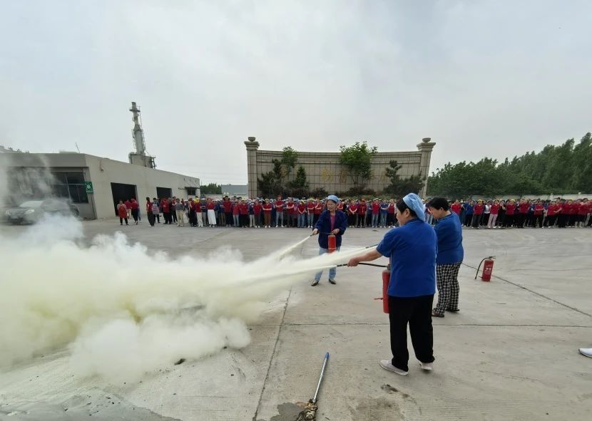 現(xiàn)場(chǎng)消防演習(xí)隊(duì)伍由總指揮、滅火撲救組、疏散組、搶救組、警戒組和聯(lián)絡(luò)組組成,通過(guò)消防培訓(xùn)和現(xiàn)場(chǎng)模擬演練,提高全體員工的消防意識(shí)并熟悉消防安全技能,時(shí)刻做到居安思危。隨后,安全負(fù)責(zé)人在應(yīng)急疏散點(diǎn)向全體員工講解、示范滅火器的使用方法,指導(dǎo)員工正確使用消防器材。
