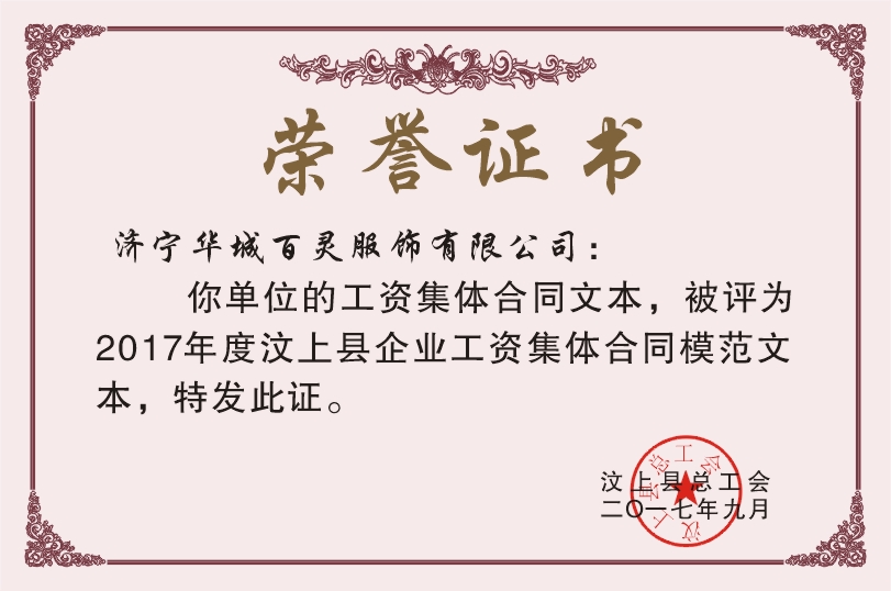 華城百靈獲評(píng)汶上縣企業(yè)工資集體協(xié)商合同文本展評(píng)先進(jìn)單位